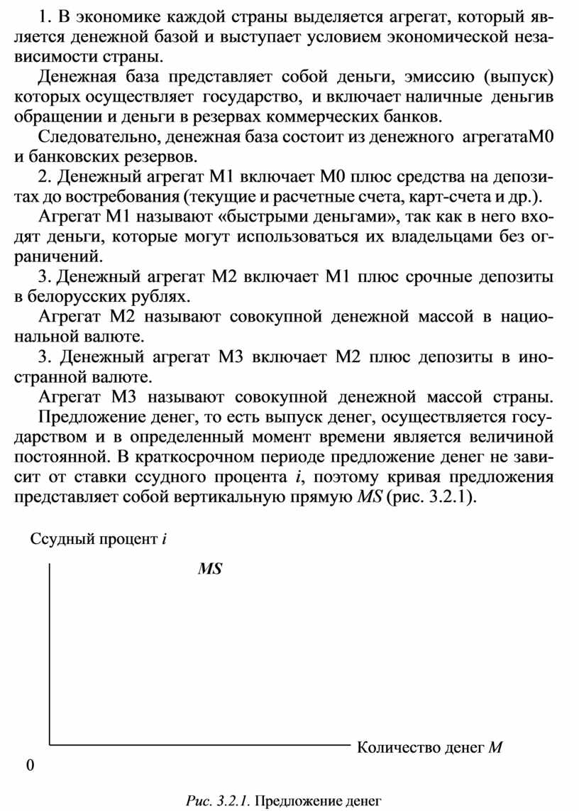 Предложение денег представляет собой общее количество денег в стране и включает денежную базу и денежные агрегаты М0, М1, М2, М3.