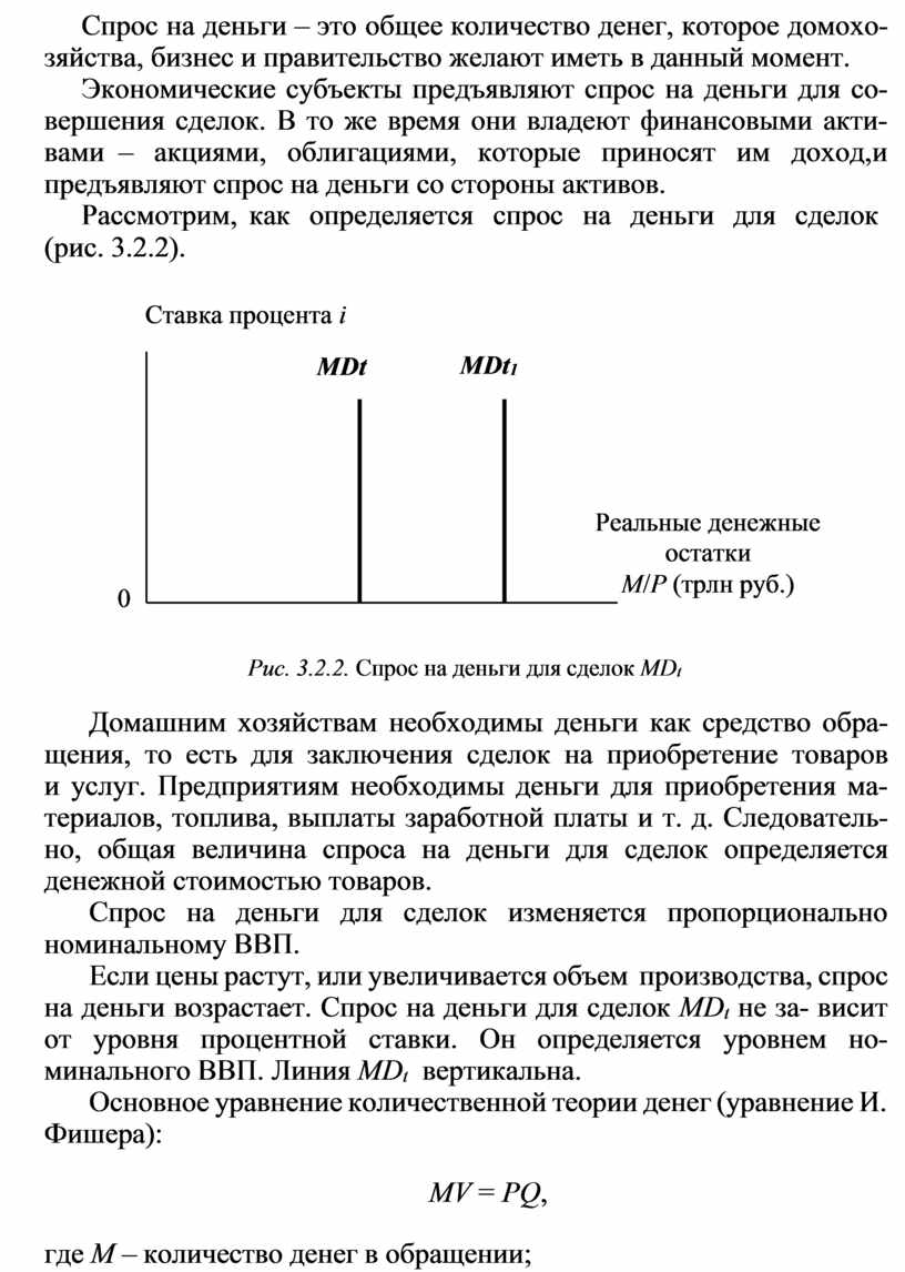 Рассмотрим, как определяется спрос на деньги для сделок