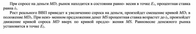 При спросе на деньги MD1 рынок находится в состоянии равно- весия в точке Е1, процентная ставка равна i1.