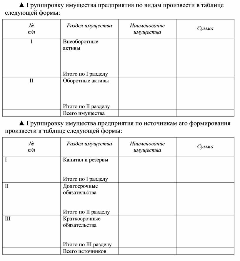 ▲ Группировку имущества предприятия по видам произвести в таблице следующей формы: