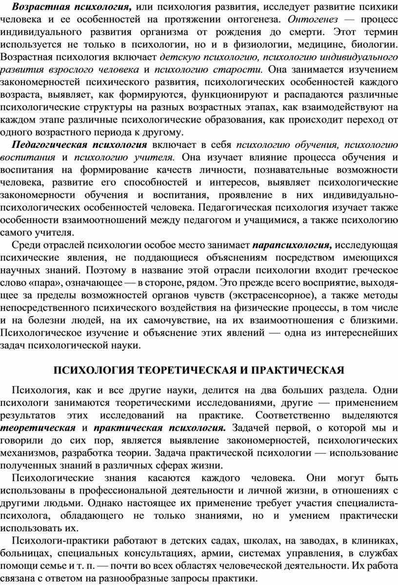 ПСИХОЛОГИЯ ТЕОРЕТИЧЕСКАЯ И ПРАКТИЧЕСКАЯ