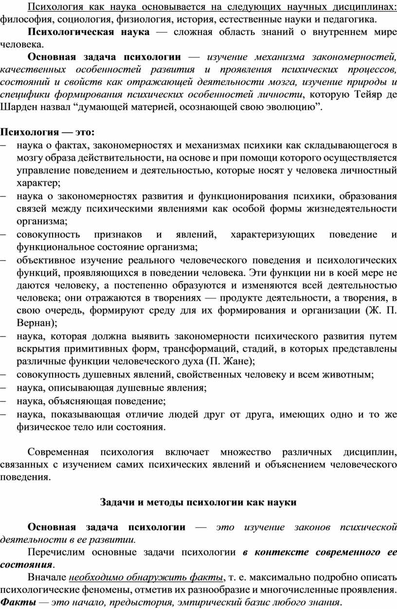Основная задача психологии — изучение механизма закономерностей, качественных особенностей развития и проявления психических процессов, состояний и свойств как отражающей деятельности мозга, изучение природы и специфики формирования психических особенностей личности, которую Тейяр де Шарден назвал “думающей материей, осознающей свою эволюцию”.