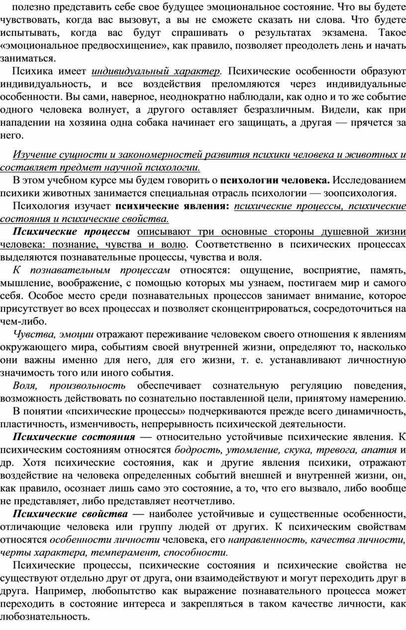 В этом учебном курсе мы будем говорить о психологии человека. Исследованием психики животных занимается специальная отрасль психологии — зоопсихология.