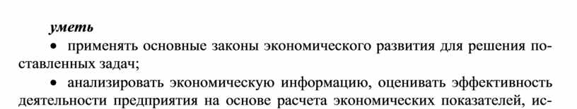 · применять основные законы экономического развития для решения по- ставленных задач;