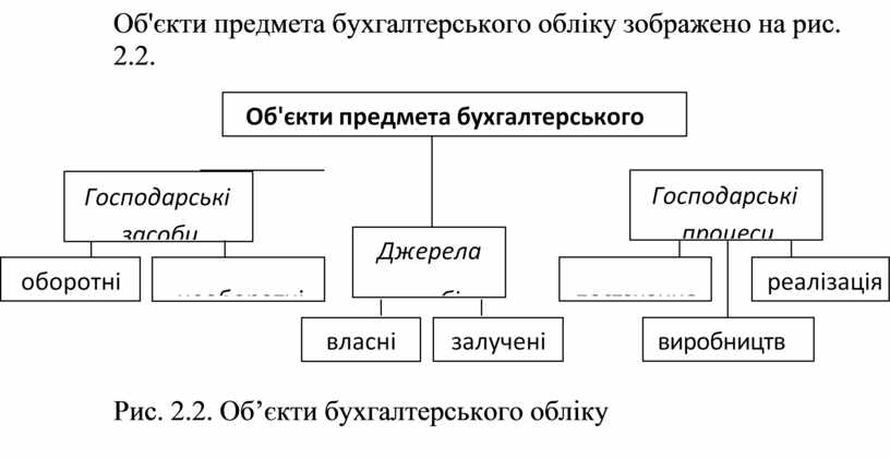 Об'єкти предмета бухгалтерського обліку зображено на рис. 2.2.