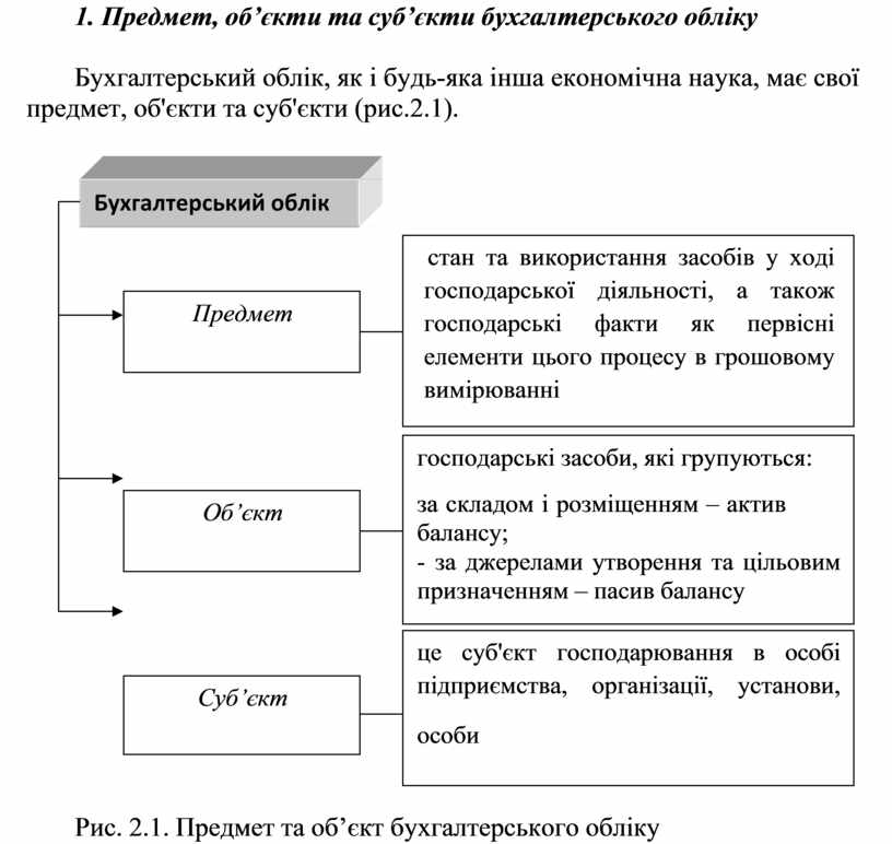 1. Предмет, об’єкти та суб’єкти бухгалтерського обліку