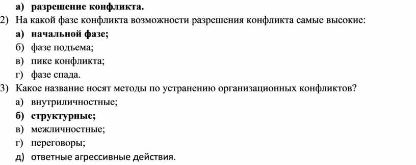 9) На какой фазе конфликта возможности разрешения конфликта самые высокие: