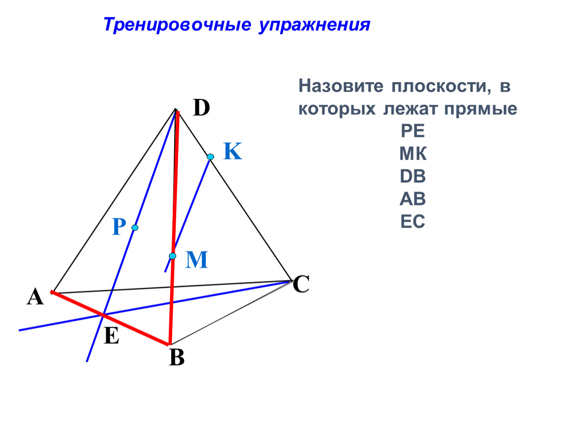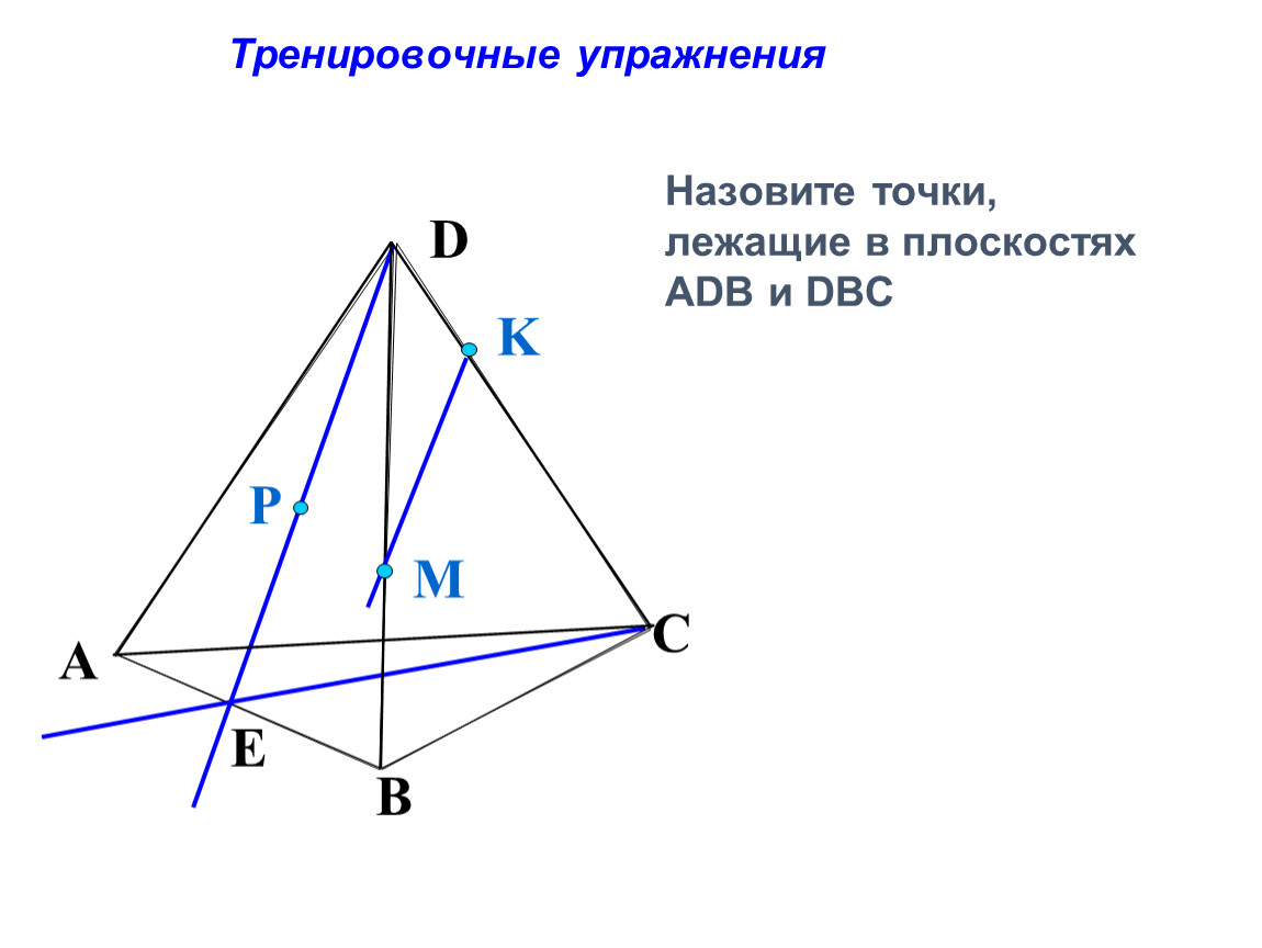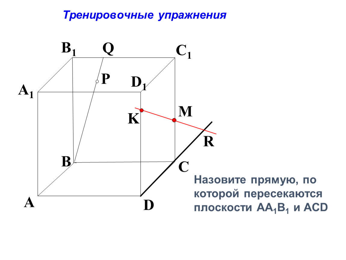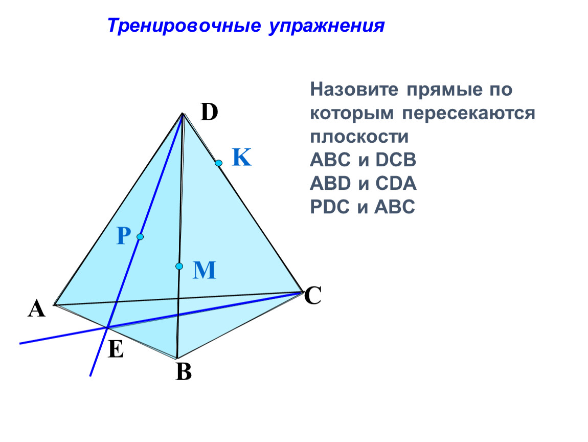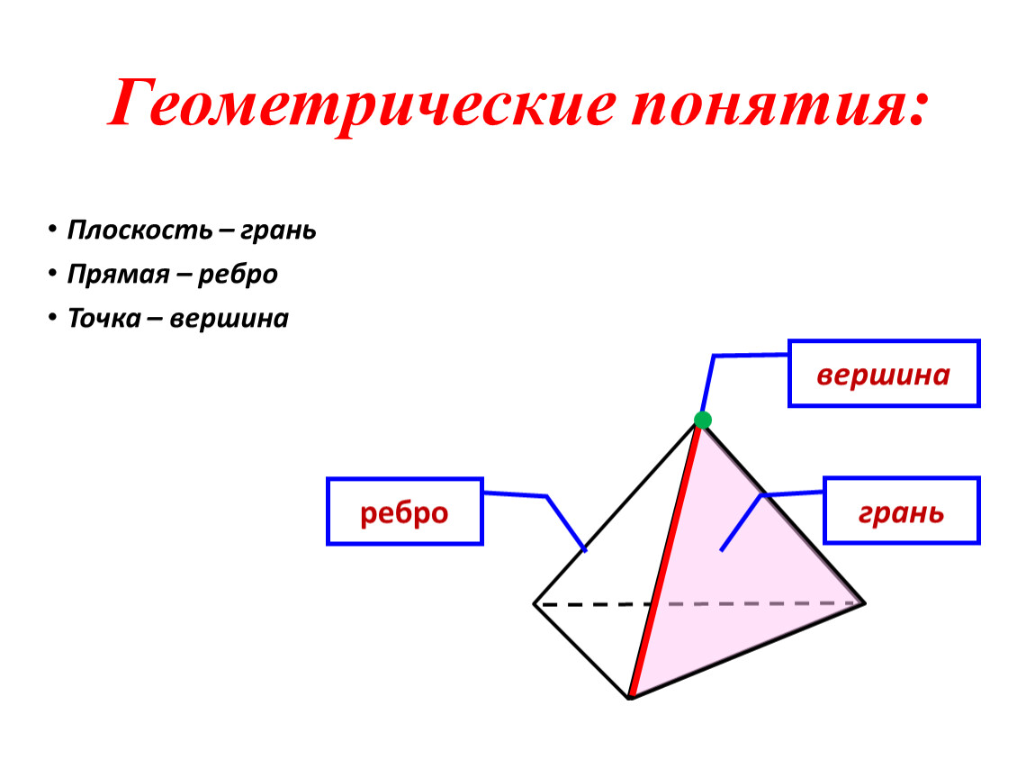 Основные свойства точек, прямых и плоскостей выражены в аксиомах. Из множества аксиом мы сформулируем только три.