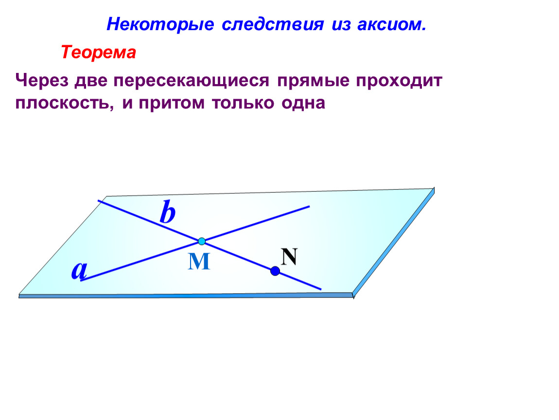 Через две пересекающиеся прямые проходит плоскость, и притом только одна