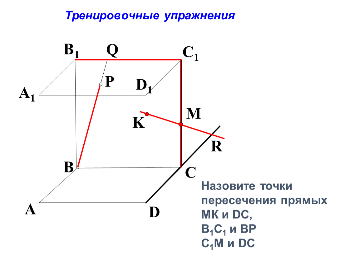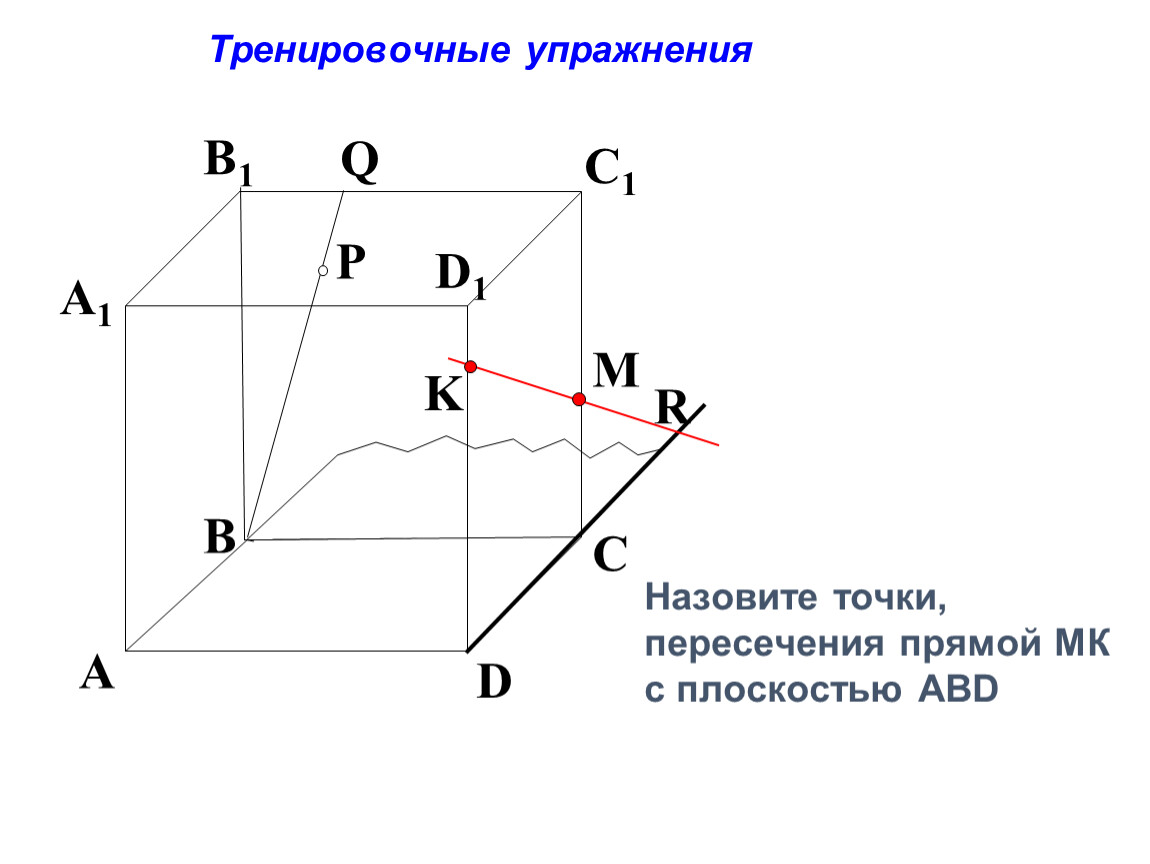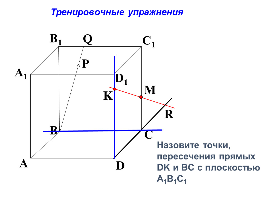 Назовите точки, пересечения прямых DK и ВС с плоскостью А1В1С1