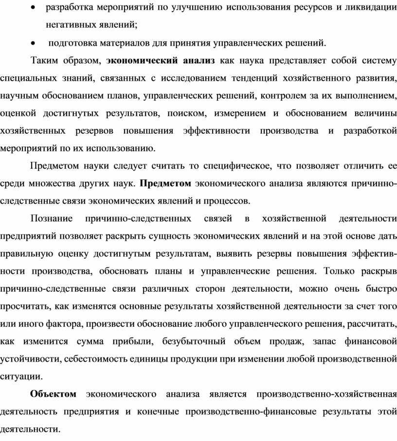 Предмет, цели и задачи экономического анализа