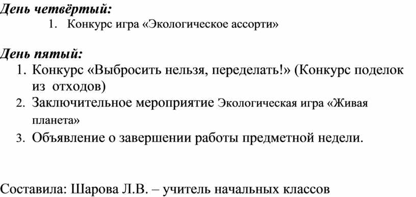 3. Объявление о завершении работы предметной недели.