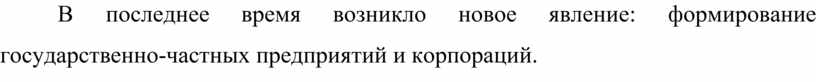 В последнее время возникло новое явление: формирование государственно-частных предприятий и корпораций.