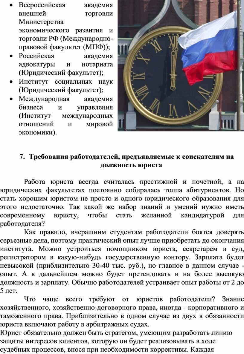 8. Требования работодателей, предъявляемые к соискателям на должность юриста………………………………………………………32