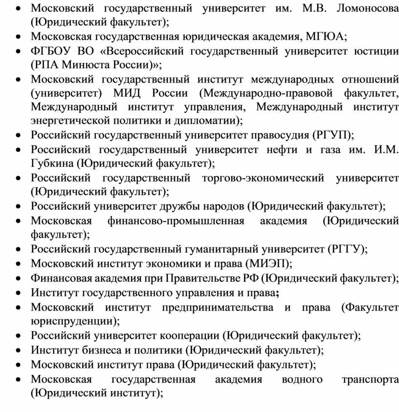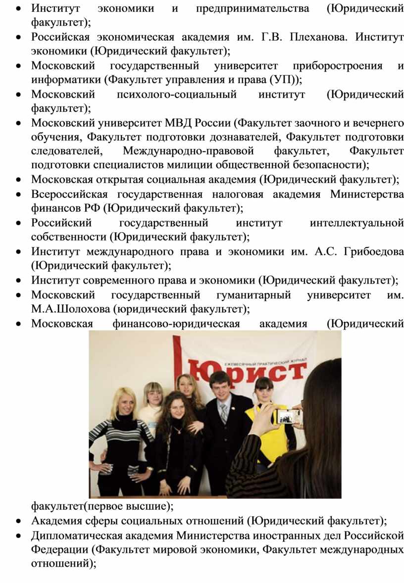 7. Особенности получения юридической специальности и список учебных заведений, обучающих данной специальности…………………………27
