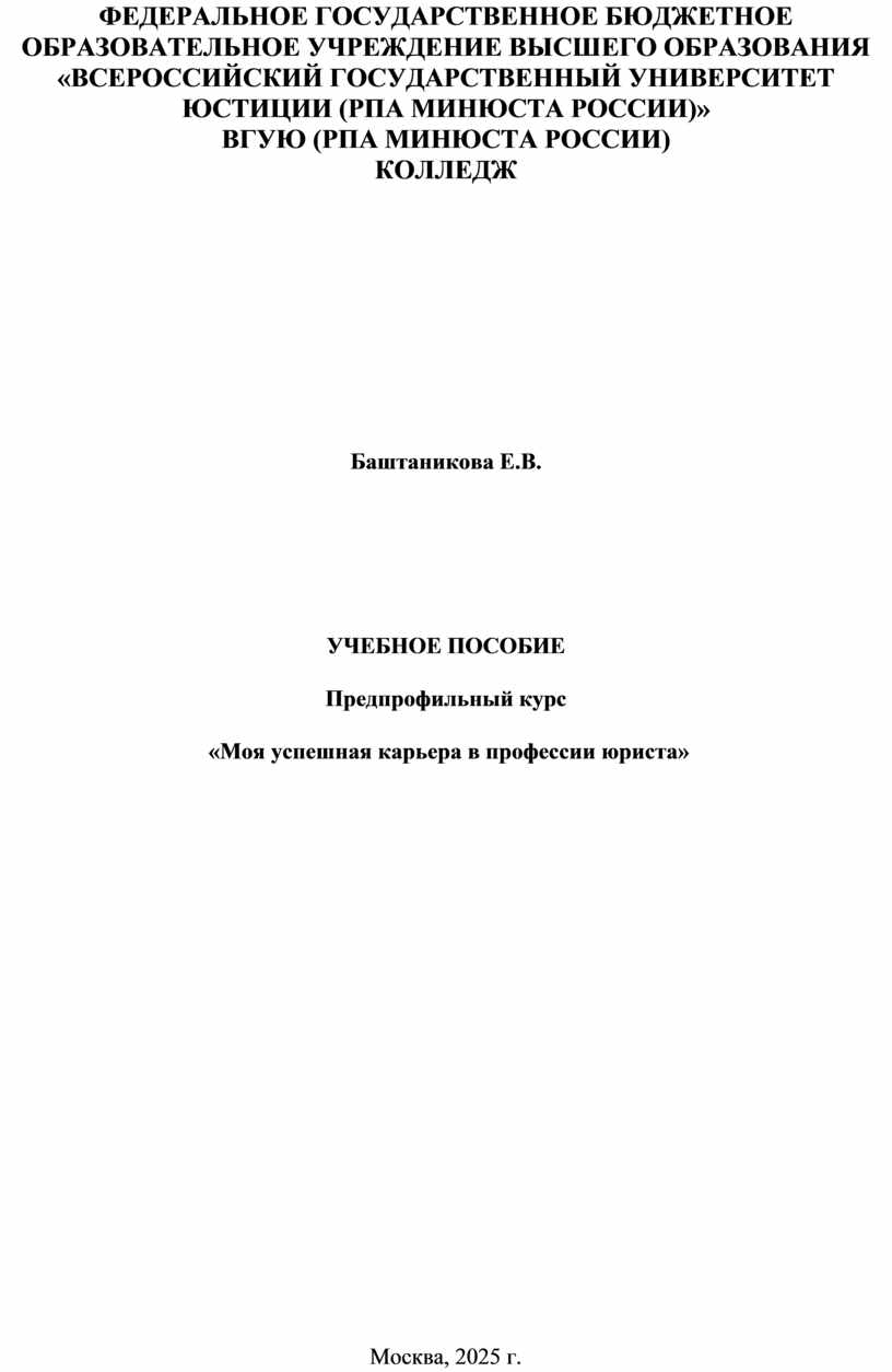 «ВСЕРОССИЙСКИЙ ГОСУДАРСТВЕННЫЙ УНИВЕРСИТЕТ ЮСТИЦИИ (РПА МИНЮСТА РОССИИ)»