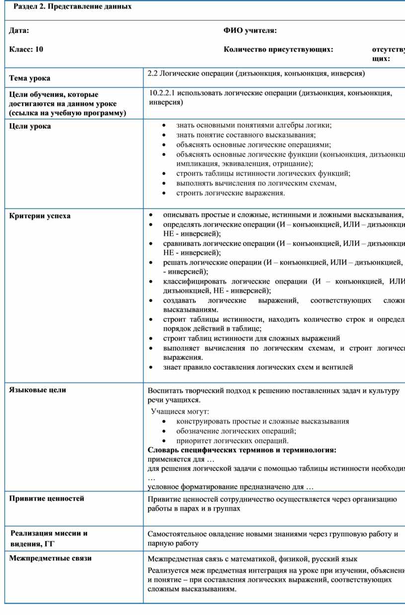 10.2.2.1 использовать логические операции (дизъюнкция, конъюнкция, инверсия)