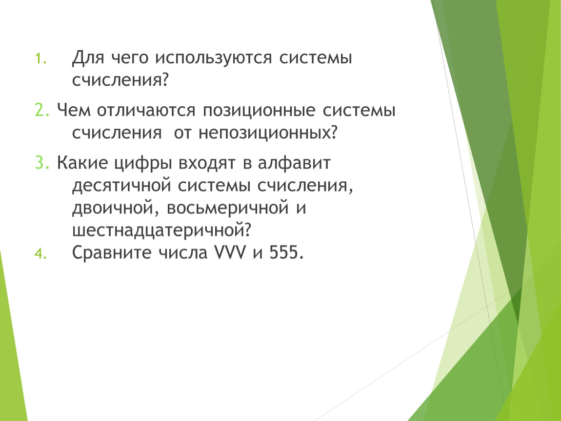 2. Чем отличаются позиционные системы счисления от непозиционных?