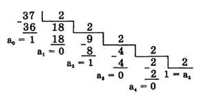 Продемонстрируем этот метод на примере перевода числа 3710 в двоичную систему. Здесь для обозначения цифр в записи числа используется символика: а5а4а3а2а1а0.
