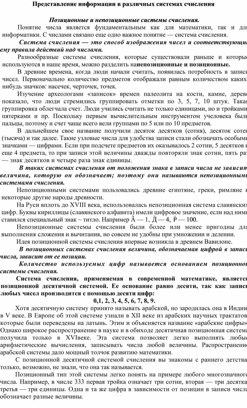 Понятие числа является фундаментальным как для математики, так и для информатики. С числами связано еще одно важное понятие — система счисления.