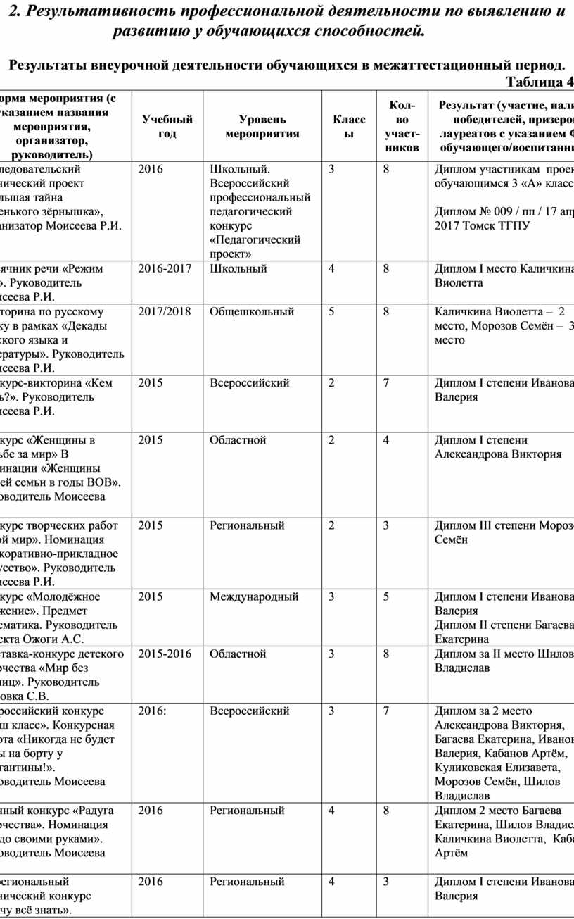 1. Ф.И.О. Моисеева Раиса Ивановна