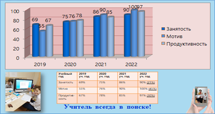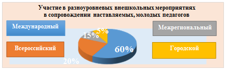 Результативность воспитательной практики подчёркивает и обозначает комплексный подход: вовлеченность молодых специалистов в педагогическую деятельность; погруженность в культурную жизнь образовательной организации; причастность к общешкольным, муниципальным и другим методическим мероприятиям под моим личным чутким сопровождением и руководством в качестве наставника. |