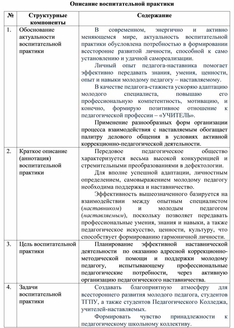 ПАСПОРТ ВОСПИТАТЕЛЬНОЙ ПРАКТИКИ