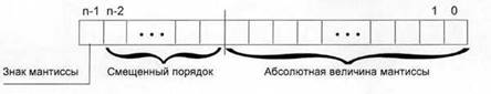 Здесь порядок n-разрядного нормализованного числа задается в так называемой смещенной форме: если для задания порядка выделено k разрядов, то к истинному значению порядка, представленного в дополнительном коде, прибавляют смещение, равное (2k-1 — 1). Например, порядок, принимающий значения в диапазоне от —128 до +127, представляется смещенным порядком, значения которого меняются от 0 до 255.