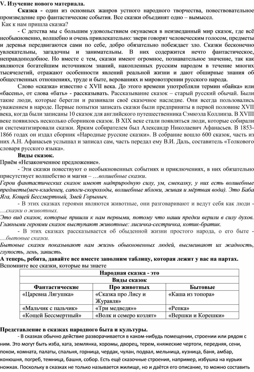 Тема: Представление в сказке народного быта и культуры: сказки о животных, бытовые, волшебные