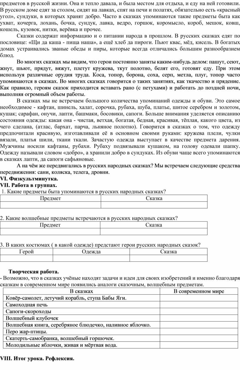 1. Какие предметы быта упоминаются в русских народных сказках?