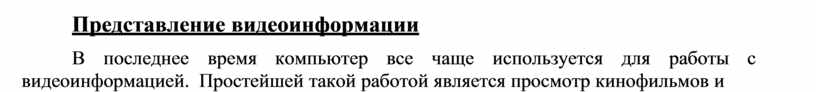 В последнее время компьютер все чаще используется для работы с видеоинформацией. Простейшей такой работой является просмотр кинофильмов и