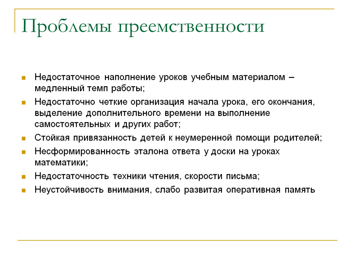 Отдельные проблемы реализации преемственности в преподавании математики, выделенные учителями начальной школы