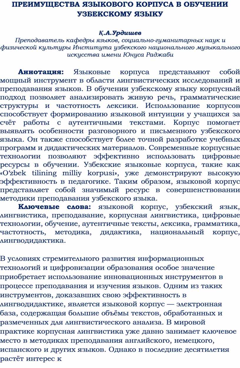 ПРЕИМУЩЕСТВА ЯЗЫКОВОГО КОРПУСА В ОБУЧЕНИИ УЗБЕКСКОМУ ЯЗЫКУ