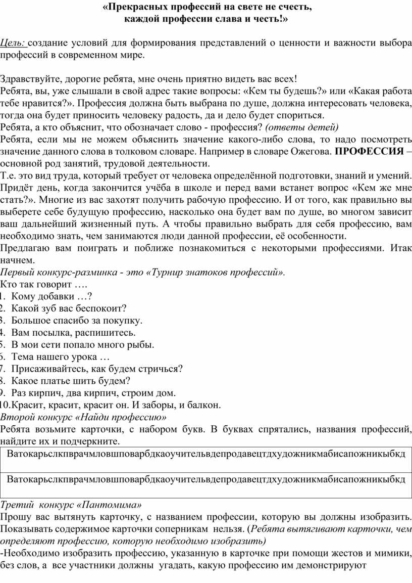 Ватокарьслкпврачмловшповарбдкаоучительвдепродавецтдхудожникмабисапожникыбкд |
