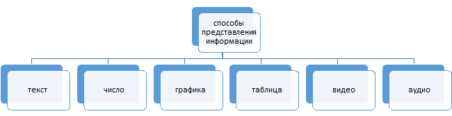 Вы перечислили способы представления информации, отразим это с вами в тетрадях в самой запоминающейся форме – графической, в виде схемы.