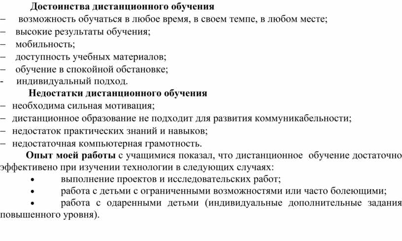 Опыт моей работы с учащимися показал, что дистанционное обучение достаточно эффективено при изучении технологии в следующих случаях: