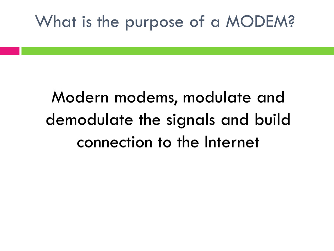 Modern modems, modulate and demodulate the signals and build connection to the Internet