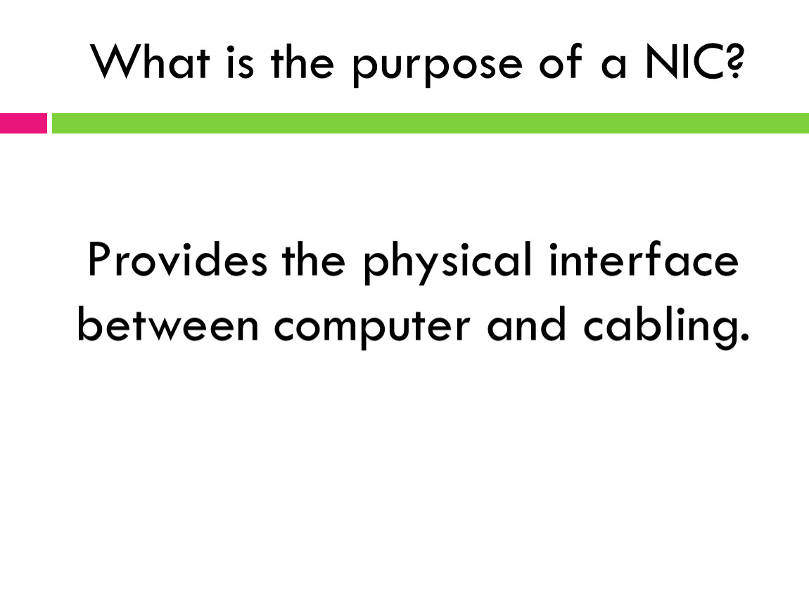 The NIC’s job is to translate the data from the computer into signals that can flow easily along the cable. It does this by converting digital signals into analog signals.