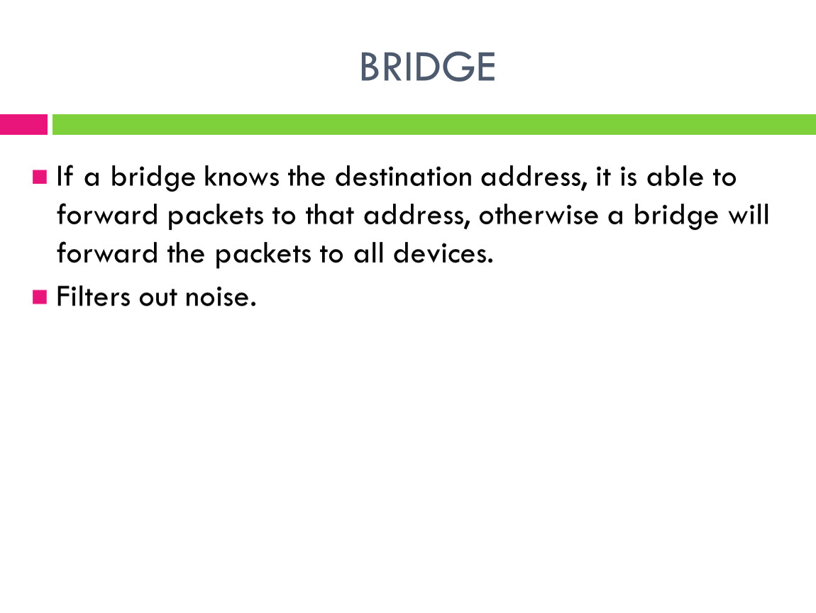 If a bridge knows the destination address, it is able to forward packets to that address, otherwise a bridge will forward the packets to all devices.