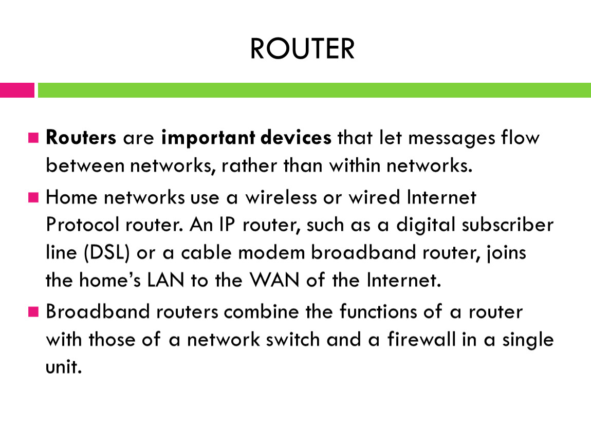 Routers are important devices that let messages flow between networks, rather than within networks.