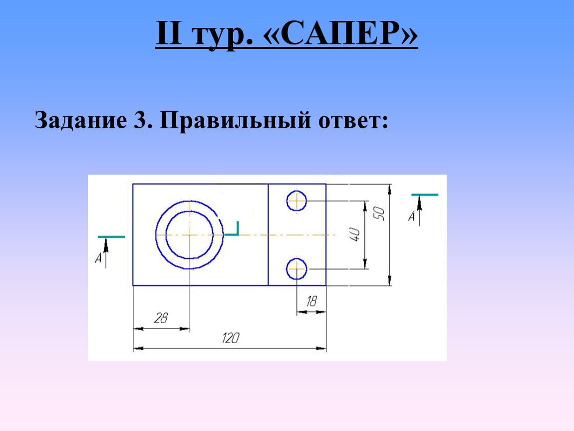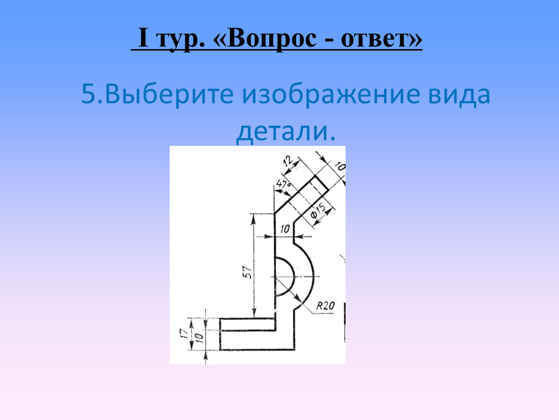 Командам предлагается рассмотреть на слайде чертеж детали.