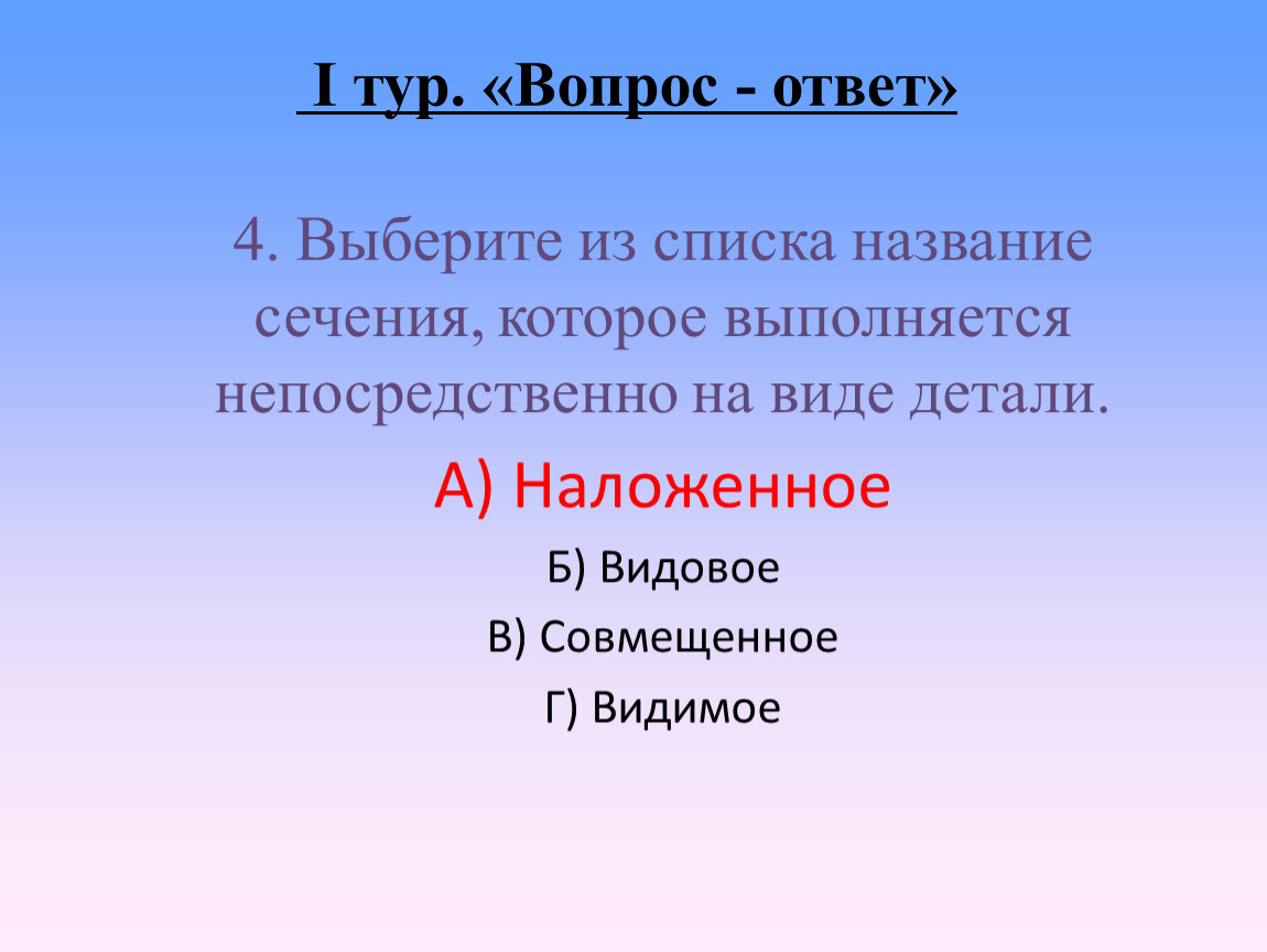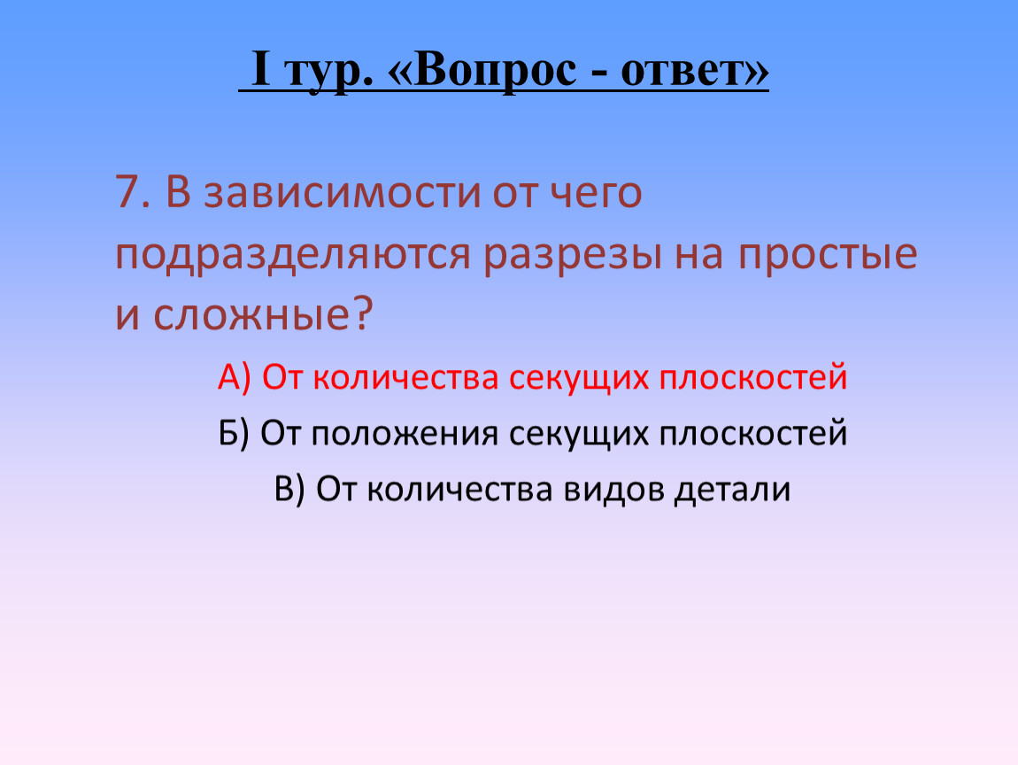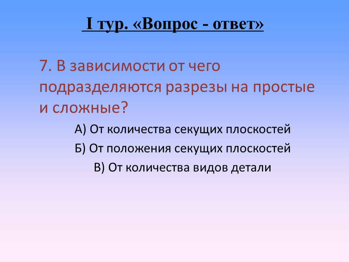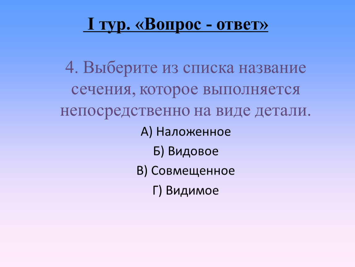 I тур. «Вопрос - ответ»