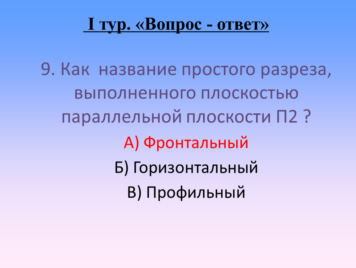9. Как название простого разреза, выполненного плоскостью параллельной плоскости П2 ?