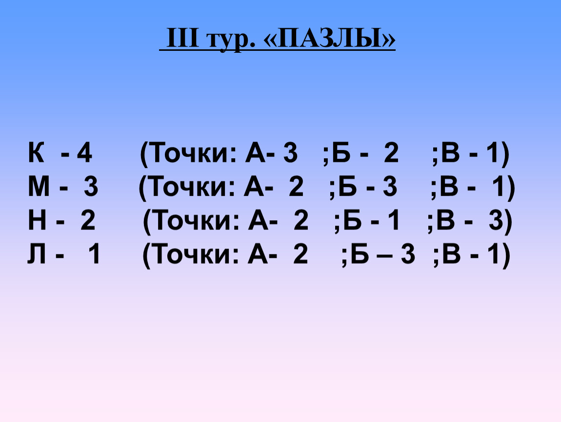 III тур. «ПАЗЛЫ»