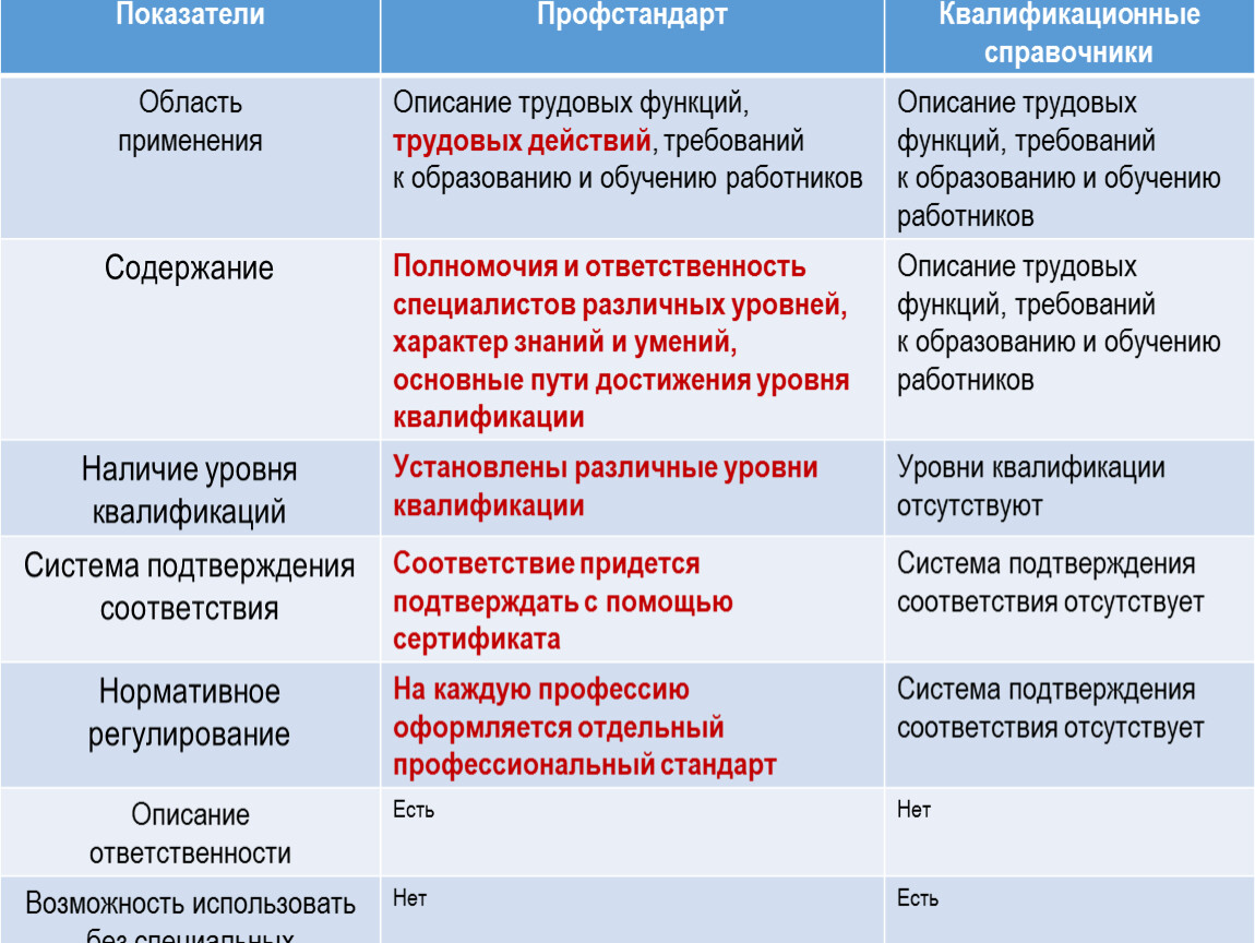 Нормативное регулирование | На каждую профессию оформляется отдельный профессиональный стандарт | |