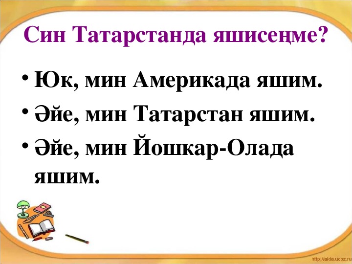 • Әйе, мин Татарстан яшим.