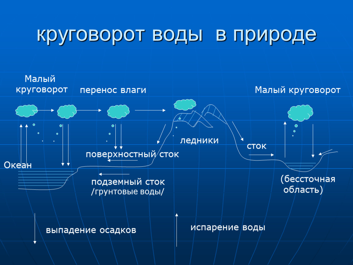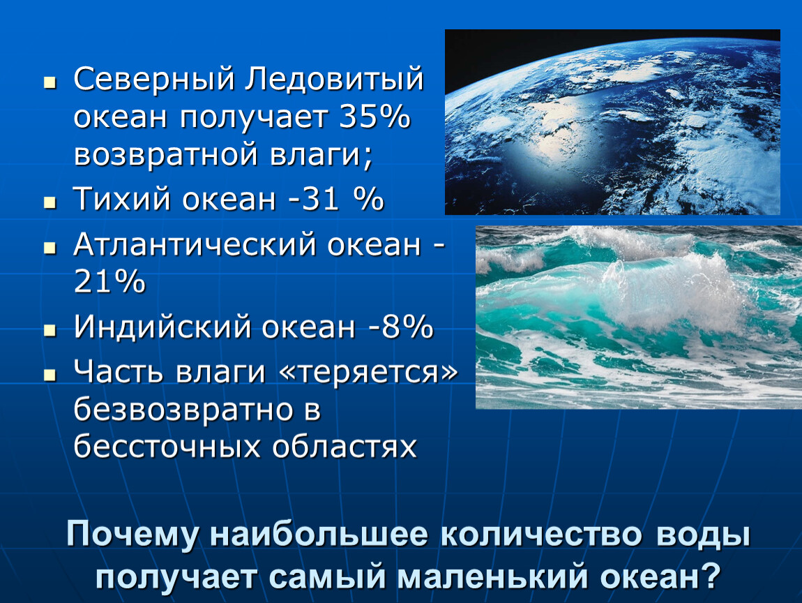 Северный Ледовитый океан получает 35% возвратной влаги;