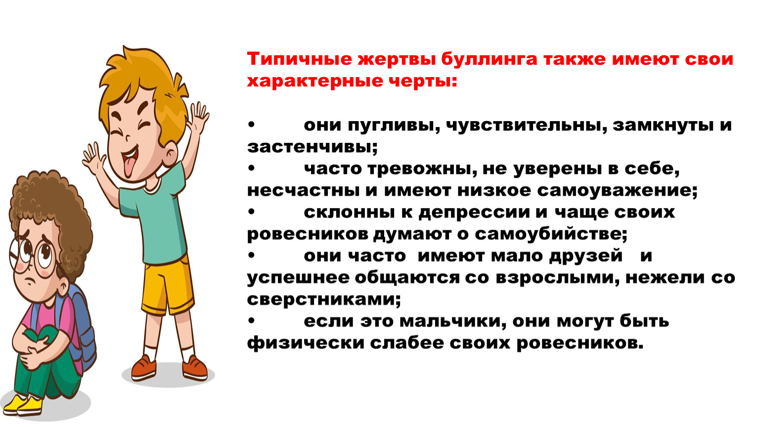 Типичные жертвы буллинга также имеют свои характерные черты: