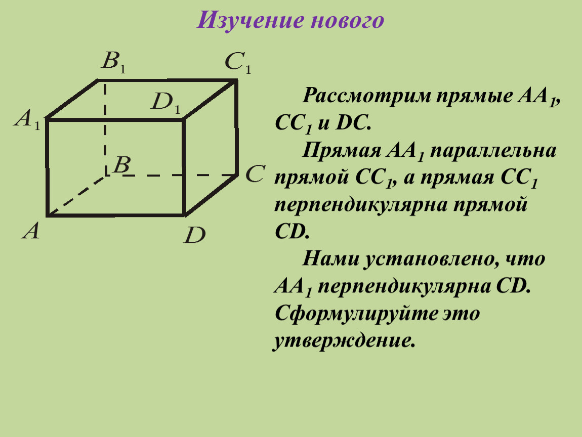 Нами установлено, что АА1 перпендикулярна CD. Сформулируйте это утверждение.