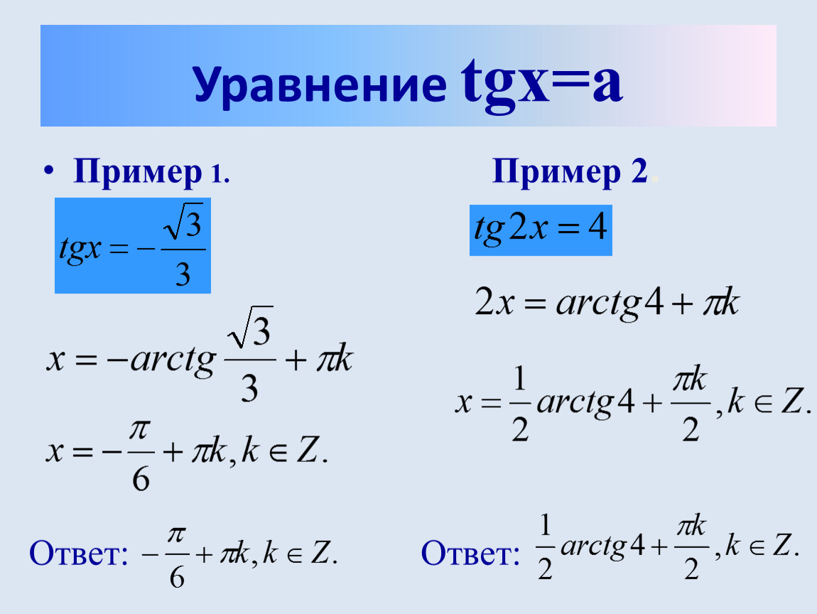 точки пересечения оси тангенсов